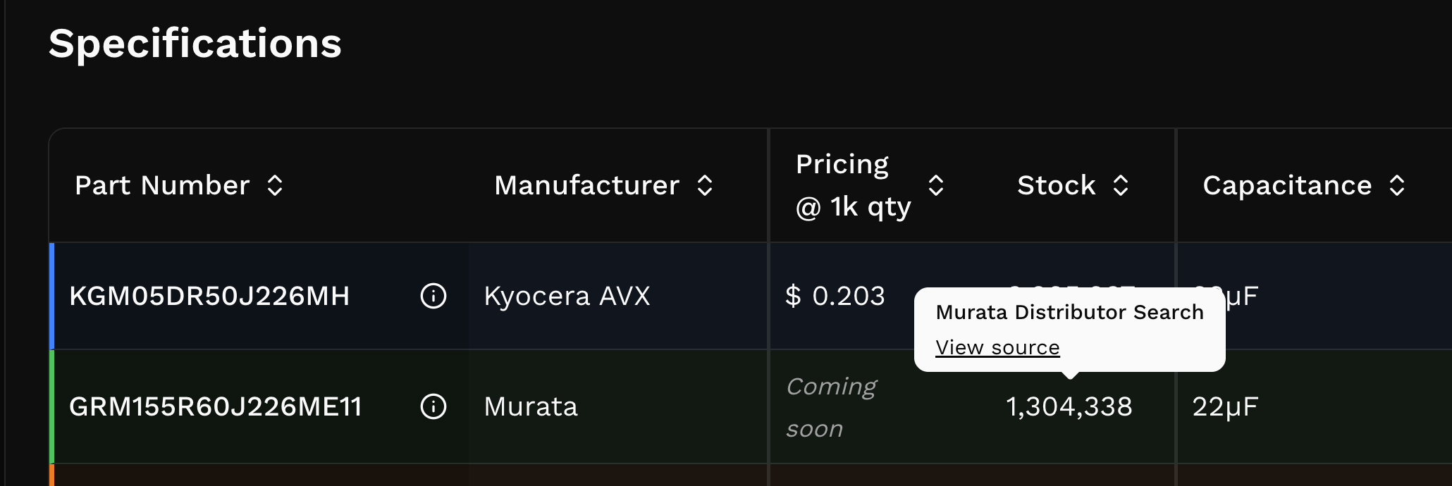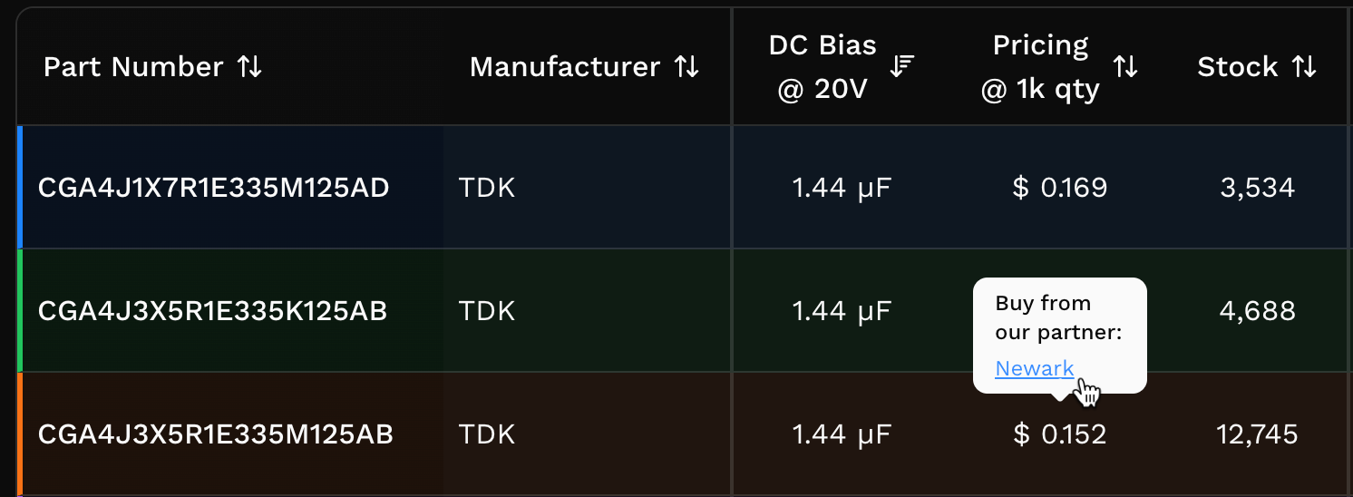 Parametric search is here! Excited about this since it's been the top request from early users. You can now filter capacitors by specification and explore DC bias, ripple current temperature rise, ESR, and impedance curves for the results.